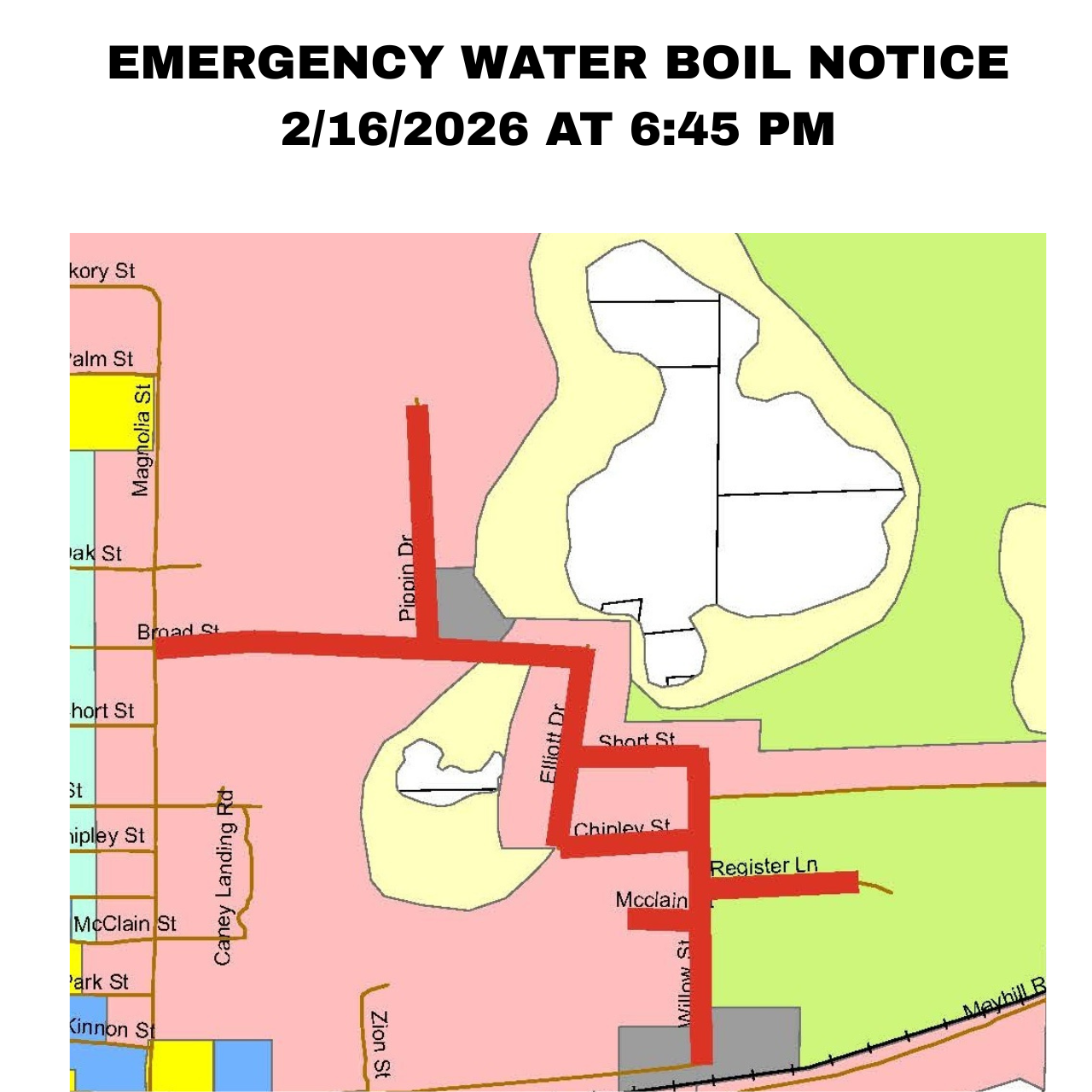 ON 2/19/2026 – THE EMERGENCY BOIL WATER NOTICE ISSUED ON FEBRUARY 16TH, 2026, IS HEREBY RESCINDED FOR: